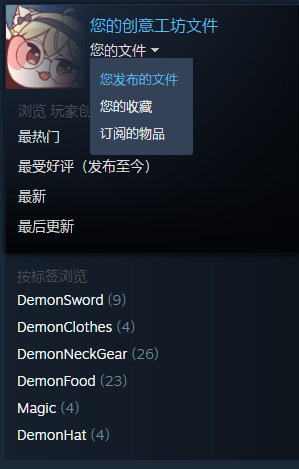 这时候打开steam创意工坊,点击您发布的文件